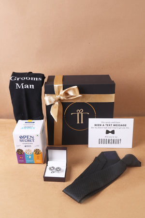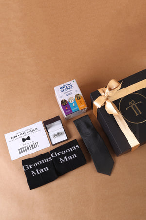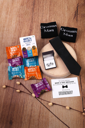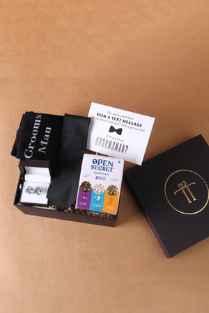 We're thrilled to introduce our latest creation: the "Best Bundle Buddy" Groomsmen Hamper, designed to be your ultimate companion on the big day. Packed with essentials for the big day, it's our way of saying thanks for being by our side. Here's to making memories together!