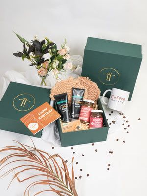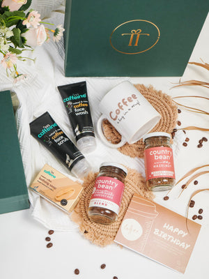 Introducing our Brewtiful Bean Box, specially crafted for those whose day begins and ends with a comforting cup of coffee. Tailored for coffee enthusiasts, this box contains an array of items inspired by or made from coffee. From invigorating coffee face washes and scrubs to charming coffee bean-shaped soaps and from quirky coffee mugs to elegantly woven coasters in rich coffee hues, this box is the perfect way to celebrate the coffee lover's special day.