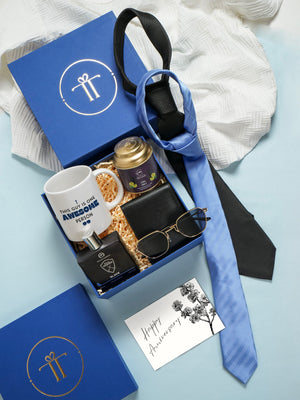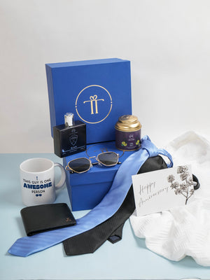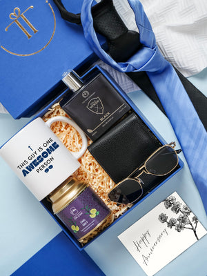 Celebrate the extraordinary individual in your life with our "Celebrating You" gift hamper. Delight their senses with the sophisticated aroma of Earl Grey Tea, offering moments of tranquility and reflection. Elevate their style with a set of two versatile ties, perfect for any occasion and adding a touch of elegance to their wardrobe. Sip their favorite brew from a coffee mug. Enhance their allure with the enticing scent of the perfume, leaving a lasting impression wherever they go. Shield their eyes from the sun in style with the sleek sunglasses, while keeping their essentials organized in the timeless black wallet. This thoughtfully curated ensemble is a testament to their uniqueness and a perfect way to honor their presence in your life.