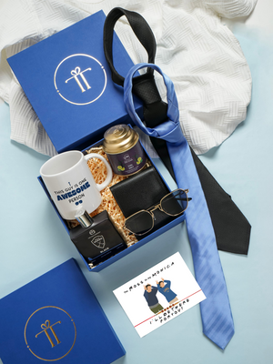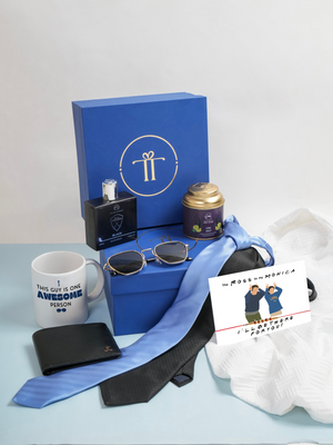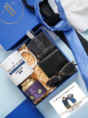 Celebrate the extraordinary individual in your life with our "Celebrating You" gift hamper. Delight their senses with the sophisticated aroma of Earl Grey Tea, offering moments of tranquility and reflection. Elevate their style with a set of two versatile ties, perfect for any occasion and adding a touch of elegance to their wardrobe. Sip their favorite brew from a coffee mug. Enhance their allure with the enticing scent of the perfume, leaving a lasting impression wherever they go. Shield their eyes from the sun in style with the sleek sunglasses, while keeping their essentials organized in the timeless black wallet. This thoughtfully curated ensemble is a testament to their uniqueness and a perfect way to honor their presence in your life.
