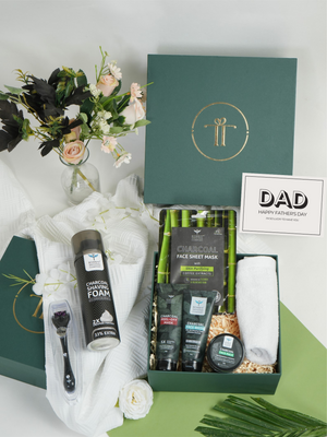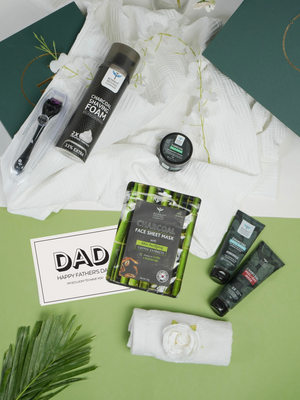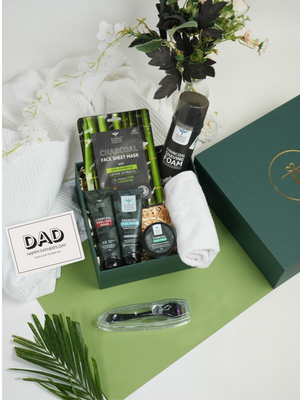 Because every gentleman deserves to look and feel his best, the “Gentlemen’s Glow” hamper offers a complete charcoal skincare ritual to refresh and rejuvenate. Packed with face wash, peel-off mask, face pack, and sheet mask from The Bombay Shaving Company, plus a face roller, soft white towel, and nourishing shaving foam. Beautifully presented in our classic green Tohfa Tales box with a heartfelt message card, it’s the perfect gift to brighten Dad’s day and his skin.