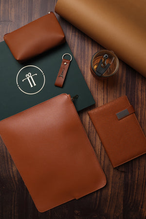 Impress clients and event attendees with our "Leather Luxe Hamper." This premium collection of leather products exudes sophistication and elegance, making it the perfect corporate gift. From sleek notebooks to stylish keychains, each item showcases fine craftsmanship and attention to detail. This hamper is sure to leave a lasting impression, fostering positive relationships and reflecting the prestige of your brand or event.
