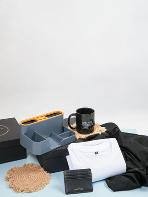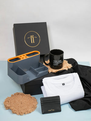 Welcome to the team with our "Onboarder's Arsenal" corporate hamper, meticulously curated to extend a warm welcome to our esteemed new team members. This thoughtful ensemble includes personalized essentials and practical items, symbolizing our dedication to fostering a supportive and productive work environment as we embark on this journey together.