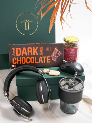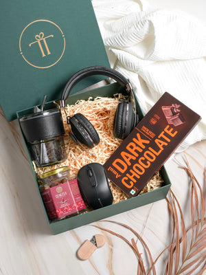 Welcome to our team with our "Orientation Oasis" hamper, meticulously curated to support your seamless transition and enhance productivity from day one. This thoughtful ensemble includes practical tools like wireless headphones and a personalized wooden pen drive, symbolizing our commitment to your success and comfort within our organization.