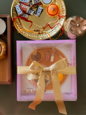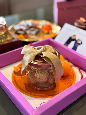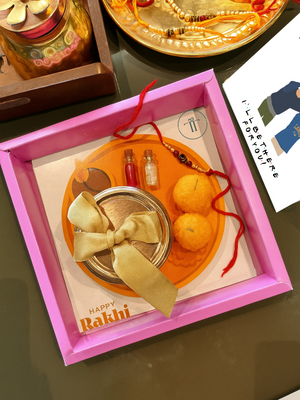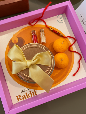 This Rakhi, pamper your brother with a thali that’s got everything he didn’t ask for, but will love! From the traditional roli chawal and a rakhi he better wear all day, to two ladoo candles (because real sweets finish too fast), a jar of handmade chocolates he’ll pretend to share, and a heartfelt message card to make him feel all mushy, this thali packs love, nostalgia, and just the right amount of emotional drama.