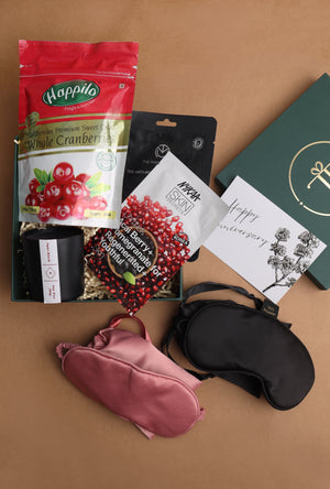 Indulge in the celebration of love with our exquisite Sooth and Savor Box. Featuring matching couple eye masks and luxurious face sheet masks, immerse yourselves in relaxation alongside your partner. As you both savor the sweetness of berries, allow the enchanting aroma of the scented candle to envelop you, creating a romantic ambiance to cherish together.