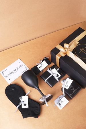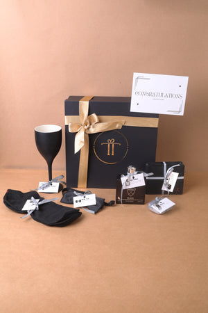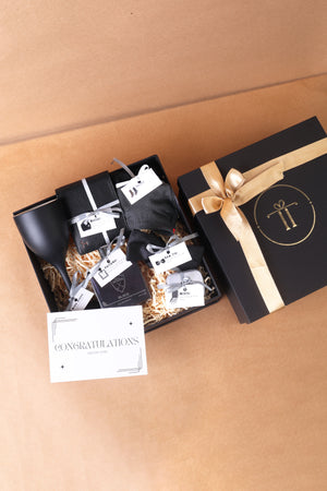 "Congratulations on your upcoming wedding! We're thrilled to present you with our Suited & Spruced hamper. It's packed with everything you need to look sharp and feel confident on your big day. Enjoy every moment!