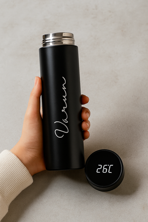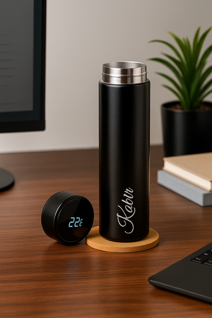 Stay refreshed in style with our Temperature Display Black Bottle. It keeps your drinks hot or cold for hours, while the smart LED display shows the exact temperature at a glance. Perfect for work, travel, or workouts, this bottle is the ideal blend of function and elegance.