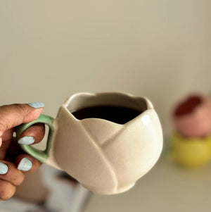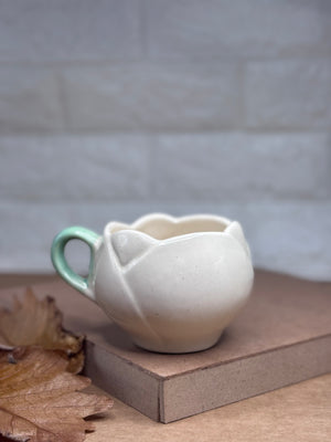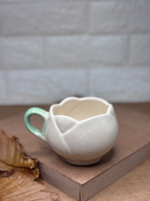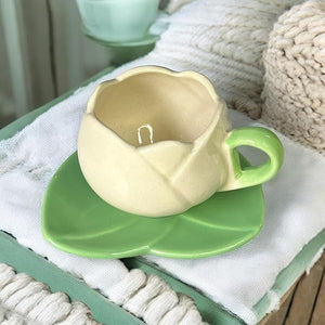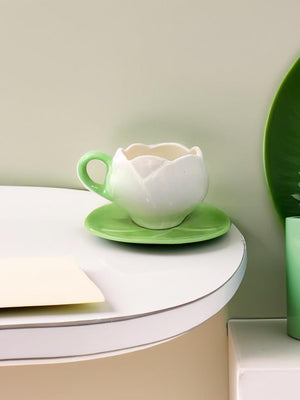 Enjoy your favorite drinks in style with this elegant lotus-inspired ceramic mug and matching saucer. The delicate design is inspired by the beauty of the lotus flower, adding a calm and peaceful touch to your tea or coffee time, making it a special and unique addition to your collection.