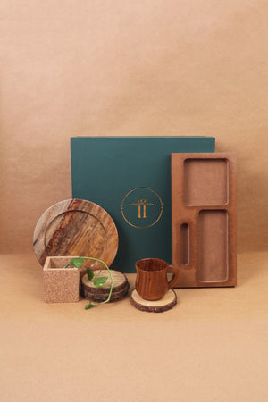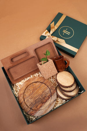 Elevate client and event gifting with our "Urban Jungle Box." This curated ensemble blends functionality with natural aesthetics, offering items like a planter with a succulent, wooden trinket dish, coasters, wooden mug, and table organizer. Perfect for fostering a serene and productive atmosphere, this hamper embodies the harmony between modern professionalism and natural elements, making it an ideal gift for corporate occasions.