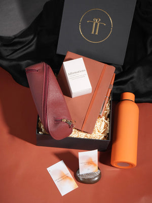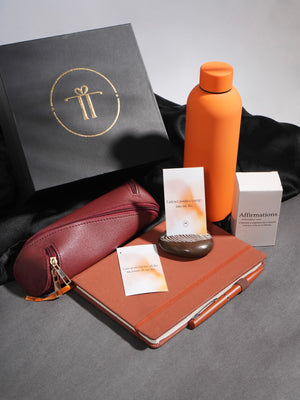 Welcome aboard with our "Welcome Workstation" corporate hamper, meticulously designed to enhance productivity and foster a sense of belonging among our esteemed employees. Personalized essentials such as a bottle, diary, pen, and stationary pouch accompany affirmation cards for moments of motivation and reflection. This thoughtful gesture underscores our commitment to your success and well-being as valued members of our team.